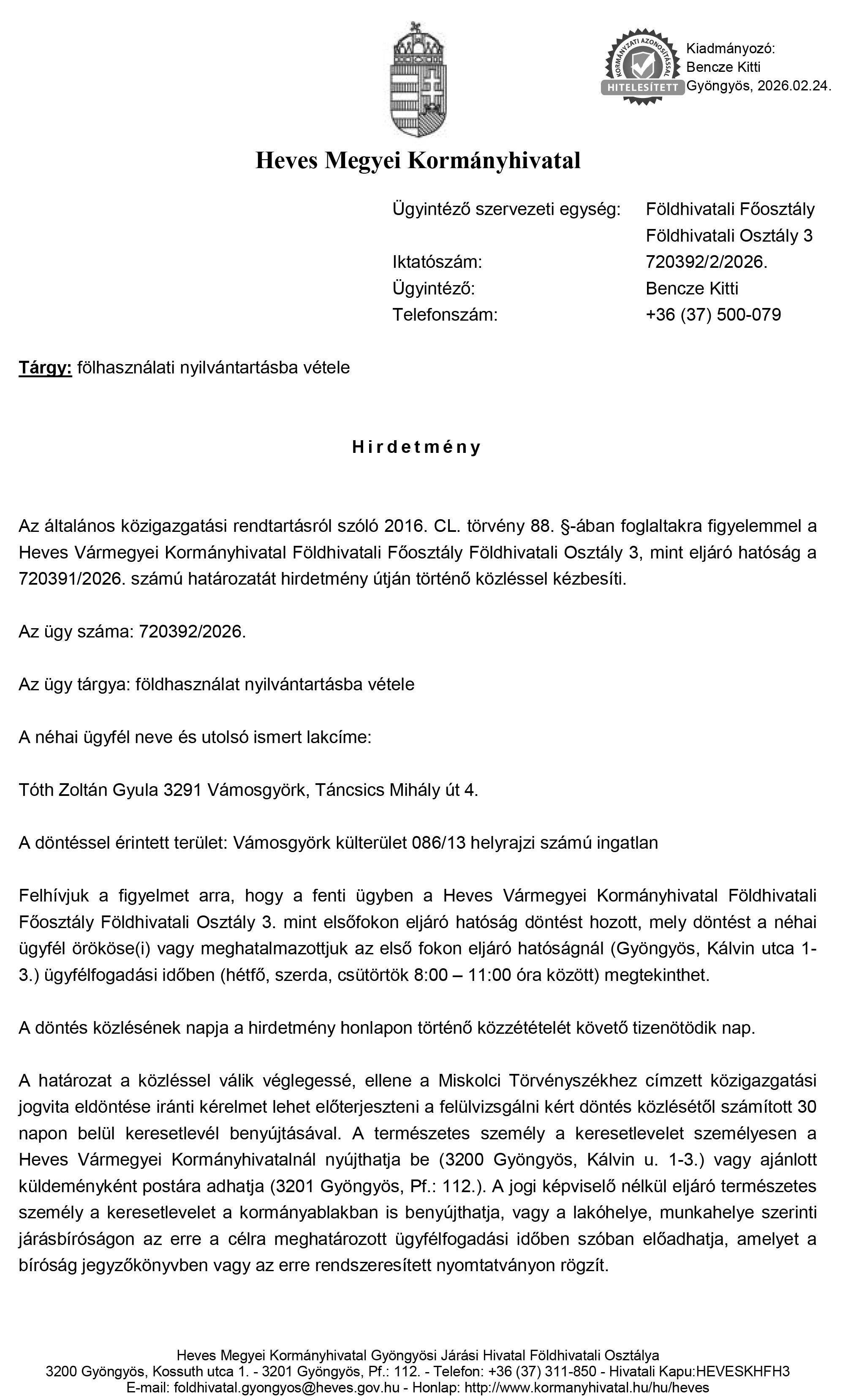 Vámosgyörk Község településrendezési eszközeinek módosítása