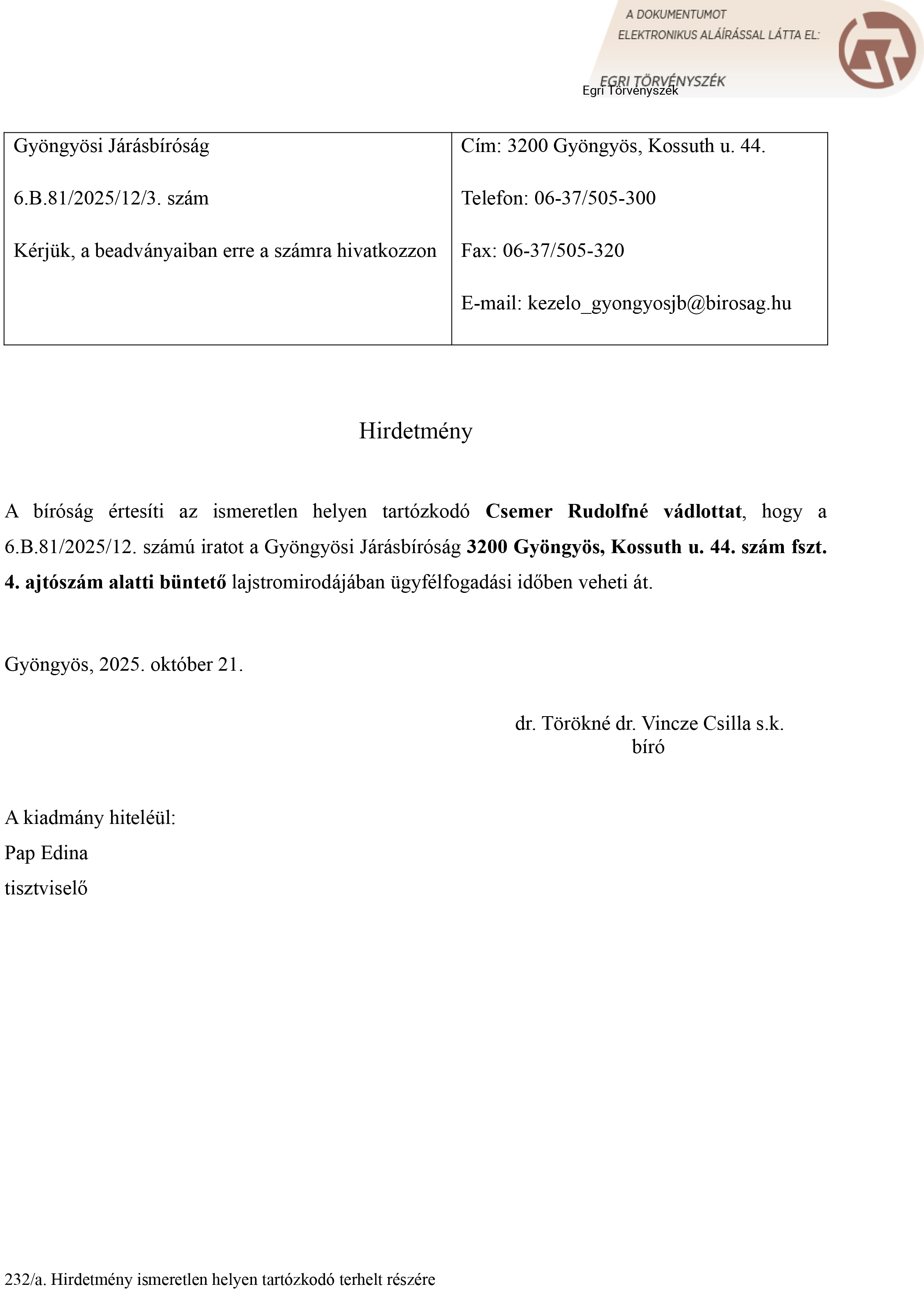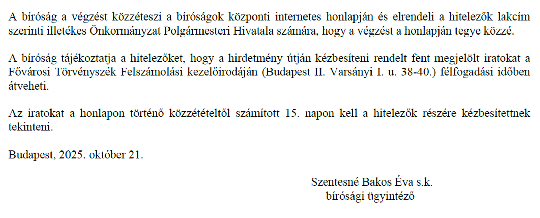 Hirdetmény - 2025.10.21.