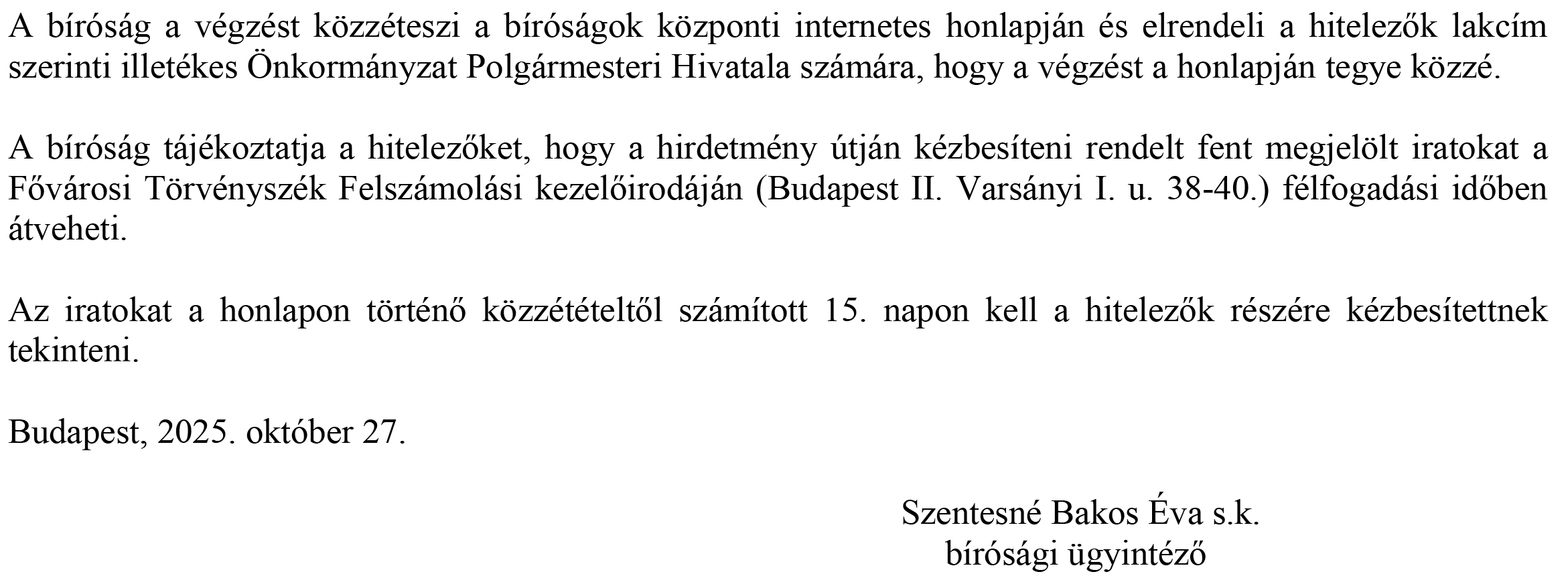 Hirdetmény - 2025.10.27.