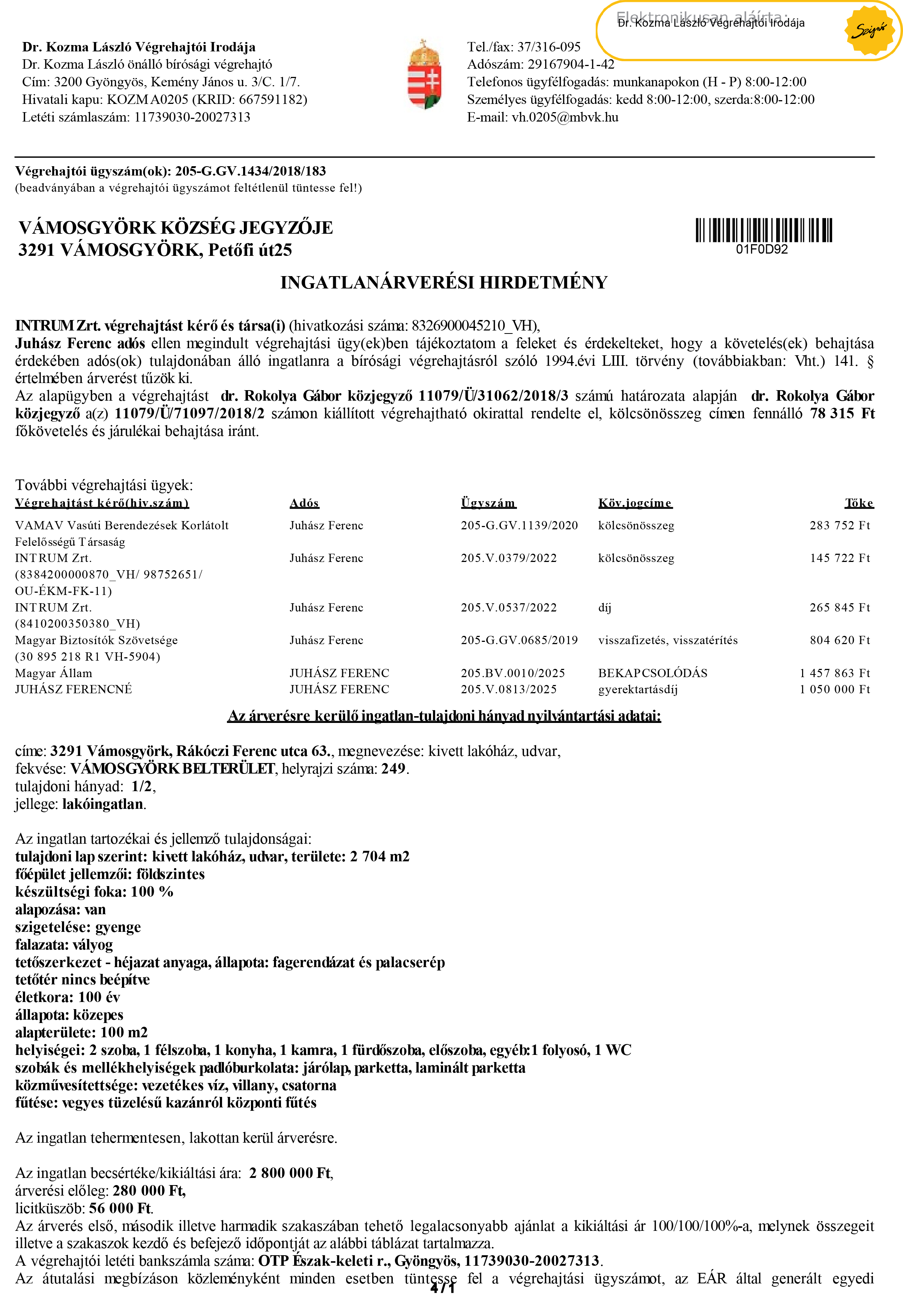 Ingatlan árverési hirdetmény - 2025.11.28.