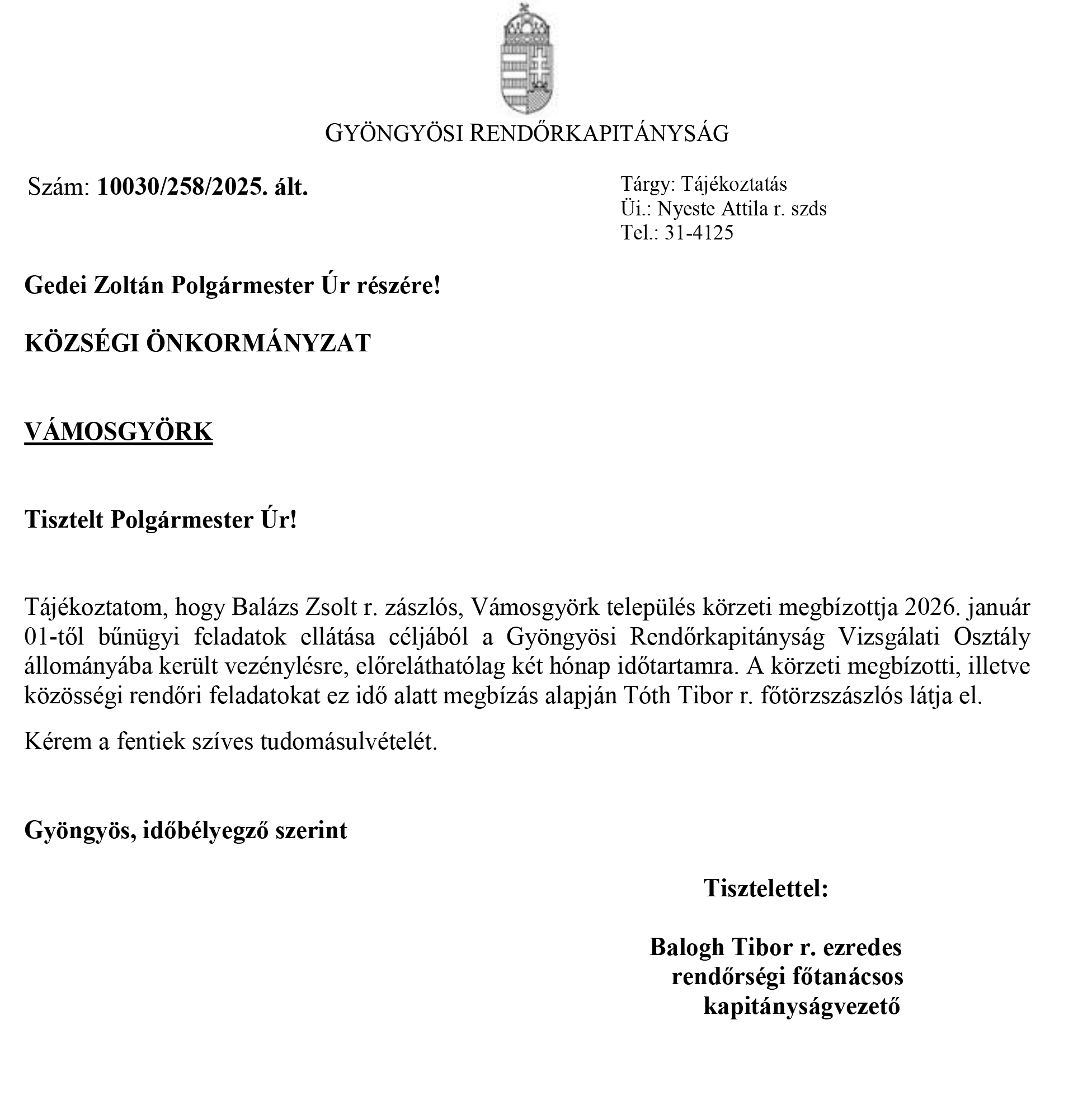 Tájékoztató - 2026.01.09.